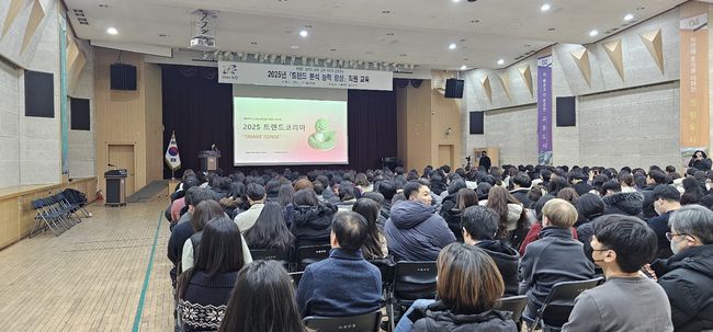 지난해 노원구 트렌드분석교육 사례.9일 서울 노원구는 급변하는 사회 흐름을 행정에 반영하기 위해 소속 직원을 대상으로 트렌드 분석능력 향상 교육을 진행한다고 밝혔다. 교육은 ‘트렌드코리아 2026’과 ‘AI 트렌드&활용백과’ 두 과정으로 구성된다.