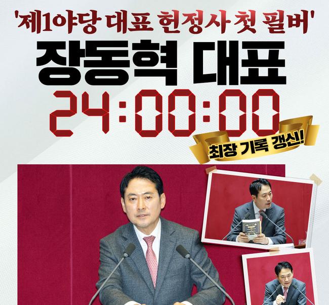 송언석 원내대표는 이날 오전 국회 본관에서 열린 현안 기자간담회에서 “지금 이 시간에도 국민의힘 장동혁 당 대표의 내란특별재판부 설치법 반대 필리버스터가 22시간 40분을 넘어 진행되고 있다”며 “헌정사상 최초의 야당 대표 필리버스터이자 최장시간 기록”이라고 말했다. 그는 이를 두고 “사법부의 독립과 삼권분립, 헌법 가치를 훼손하는 사법파괴 5대 악법을 저지하겠다는 당의 강력한 의지를 당 대표가 몸소 실천한 것”이라고 평가했다.