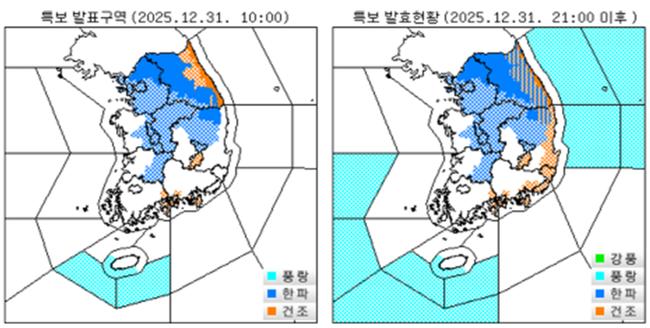한파주의보 발표현황(`25.12.31. 오전 10시)