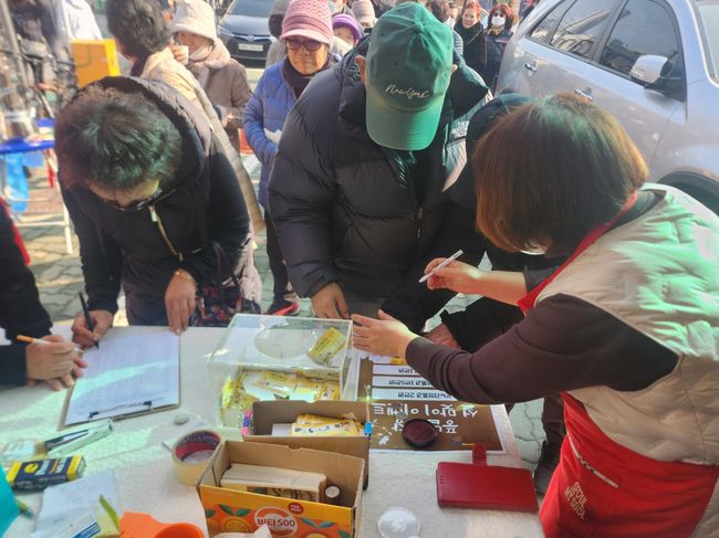 지난해 설 명절 환급행사.2일 송파구는 설 명절을 앞두고 소비자 물가 부담 완화와 전통시장 이용 활성화를 위해 관내 전통시장과 상점가 7곳에서 온누리상품권 환급 행사를 시작했다고 밝혔다. 행사는 준비된 상품권이 소진될 때까지 진행된다.