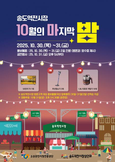 송도역전시장이 10월 31일 `10월의 마지막 밤 축제` 공연 및 경품 추첨 행사를 개최한다