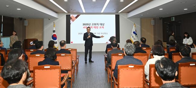 이번 교육은 2021년부터 고위직 공무원을 대상으로 `4대 폭력 예방 교육`이 의무화됨에 따라, 공공기관의 성희롱·성폭력 방지 의무를 이행하고 성 평등한 조직문화를 조성하기 위해 마련됐다.