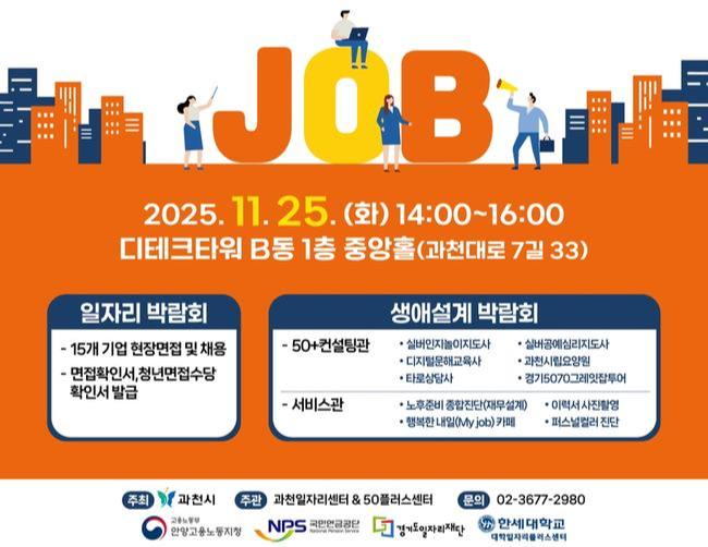 과천시는 오는 25일 디테크타워(갈현동) B동 중앙홀에서 구직자와 구인기업을 연결하고 중·장년층의 생애설계 지원을 강화하기 위한 `2025 과천시 일자리&생애설계 박람회`를 개최한다고 밝혔다.