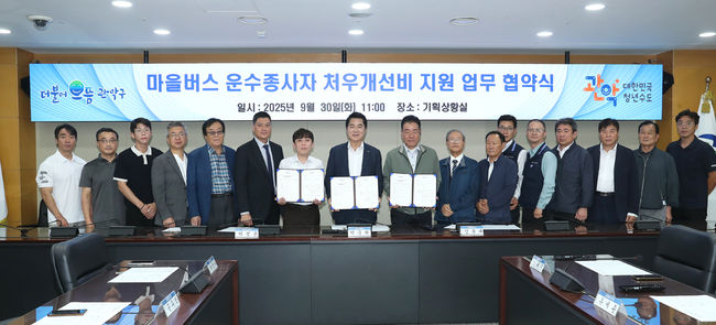 관악구가 마을버스 운수사, 운수종사자와 함께 `처우개선비 지원`에 대한 업무 협약을 체결했다.관악구(구청장 박준희)는 지난달 30일 ‘마을버스 운수종사자 처우개선’을 위한 3자 업무협약을 체결했다고 밝혔다.