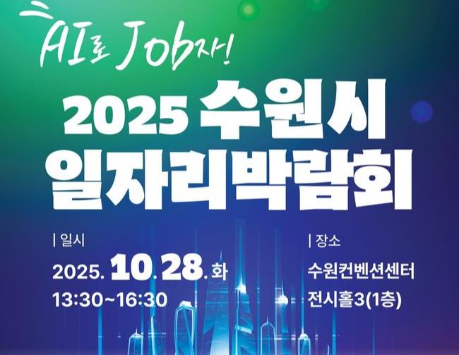 수원특례시(시장 이재준)와 고용노동부 경기지청은 10월 28일 오후 1시 30분부터 4시 30분까지 수원컨벤션센터 전시홀에서 `AI로 JOB자-2025 수원시 일자리박람회`를 개최한다.