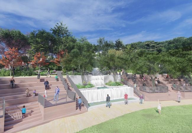 새롭게 조성될 산기슭공원은 폭염과 한파 등 기후 위기에도 안전하게 이용할 수 있는 `기후적응형 공원`으로 재탄생한다. 워터쿨러테라스, 빗물순환시스템, 쿨링포그 등의 시설이 들어설 예정이다.