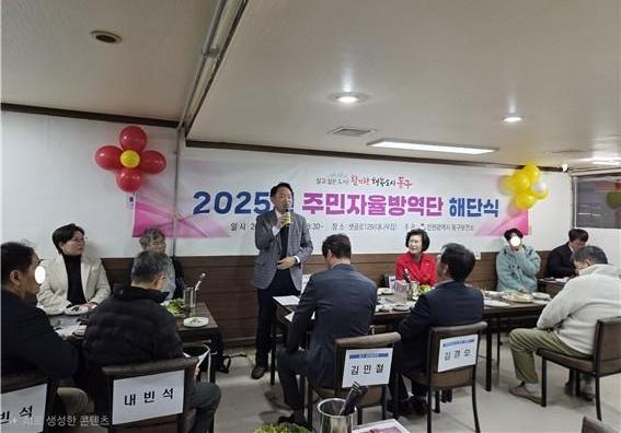 인천 동구(구청장 김찬진)는 지난 25일 말라리아 등 매개모기 감염병 예방을 위해 방역소독 활동을 수행한 `동구 주민자율방역단`의 활동을 마무리하는 해단식을 열었다고 밝혔다.