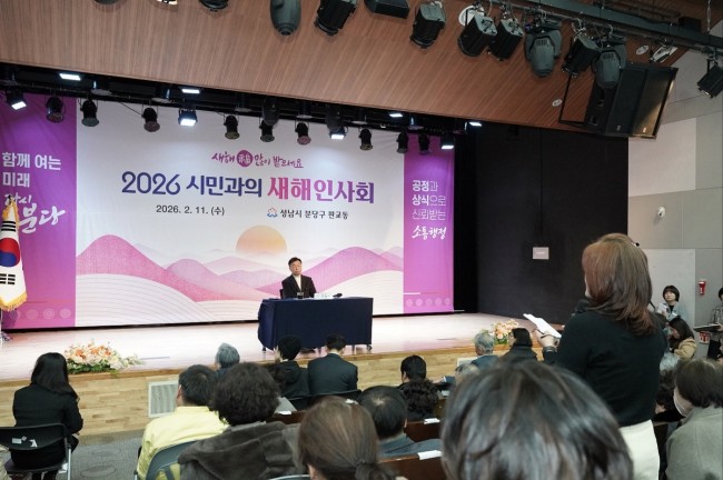 성남시(시장 신상진)는 지난 1월 21일부터 2월 12일까지 약 3주간 시민과 직접 소통하며 시정 운영 방향을 공유한 `2026년 시민과의 새해 인사회`를 성황리에 마무리했다. 50개 동을 순회하며 34회에 걸쳐 진행된 이번 인사회에는 시민 8390명이 참여했으며, 누적 소통 시간은 3400분(56시간 40분)에 달했다.